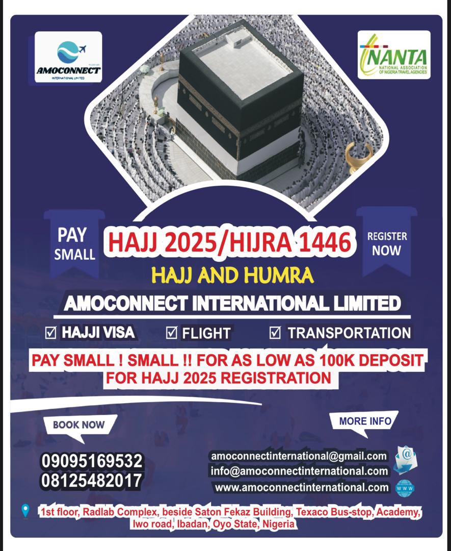 Do you know that you can start planning for your 2025 hajj/ hijra 1446, by paying small small for as low as 100,000 to 5Mnaira. Call/whatsapp us on 2349095169532/2348125482017.
